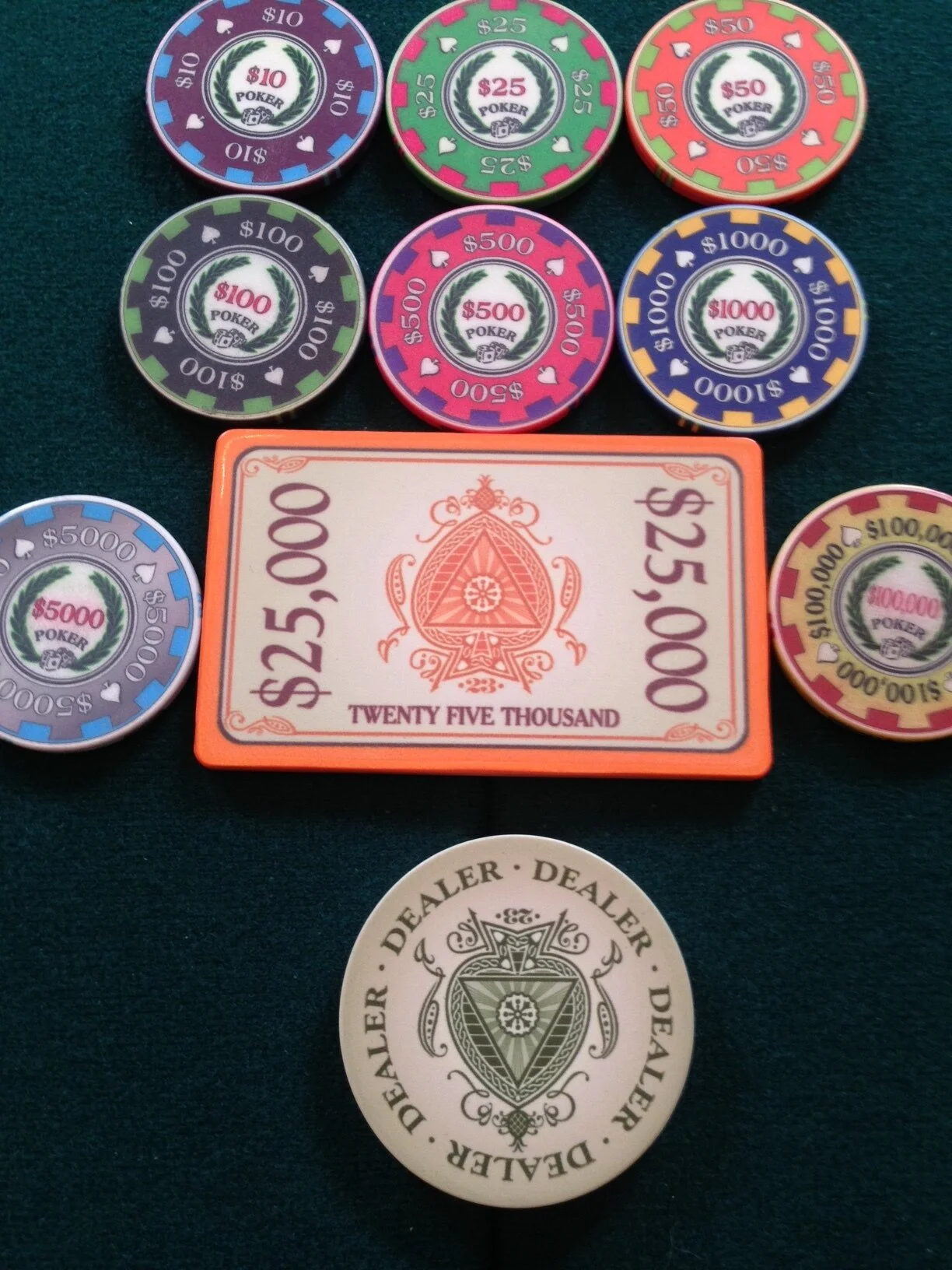 There is a dealer and the dealer deals the cards. Each player gets two cards to start. Then the dealer puts down the “flop,” which is two cards face down in a pile and three cards face up. Everyone bets using their chips. Then the dealer puts a card face down on the pile and the one up. Everyone bets again. Then there is one last card called the “river,” and that is the last bet.